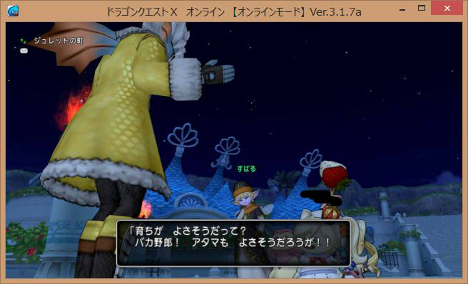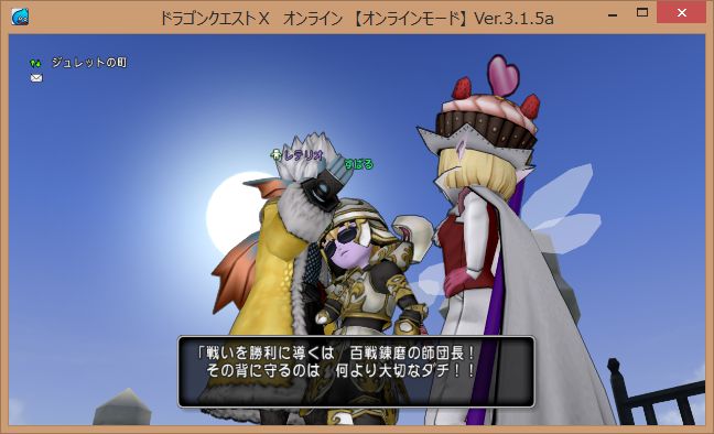 昨年末は仕事が忙しくなって、なかなかプレイ時間がとれずでしたが、 とりあえず年末年始のお休みはドラクエを満喫しています バージョンアップも間にありました なんとか滑り込みで3.1をクリアして、氷の世界で年越しをしました 年始はショップで福袋とスチーム装備を買ってしまい、 おしゃマスの称号をいただきました…! レテリオと合わせて、ちまちま装備を作っては結晶にしてきたので すごく嬉しいです! ナオ君に高レベルの装備をいくつかお借りしたのと、 誕生日に高価な装備をくださったフレ様に感謝です! 高価な装備はめったに買わないから助かった…! 久々にすごろくに行ったり、チムクエやったり、 魔塔もサポと行けるようになったので、挑戦したりしてました 今年もまぁマイペースにやっていこうと思います(^ω^) よろしくお願いしますです! 2015.12.30 Wed 18:42:25 漆黒の堕天使⑥12月に1回も更新してなかったですね!